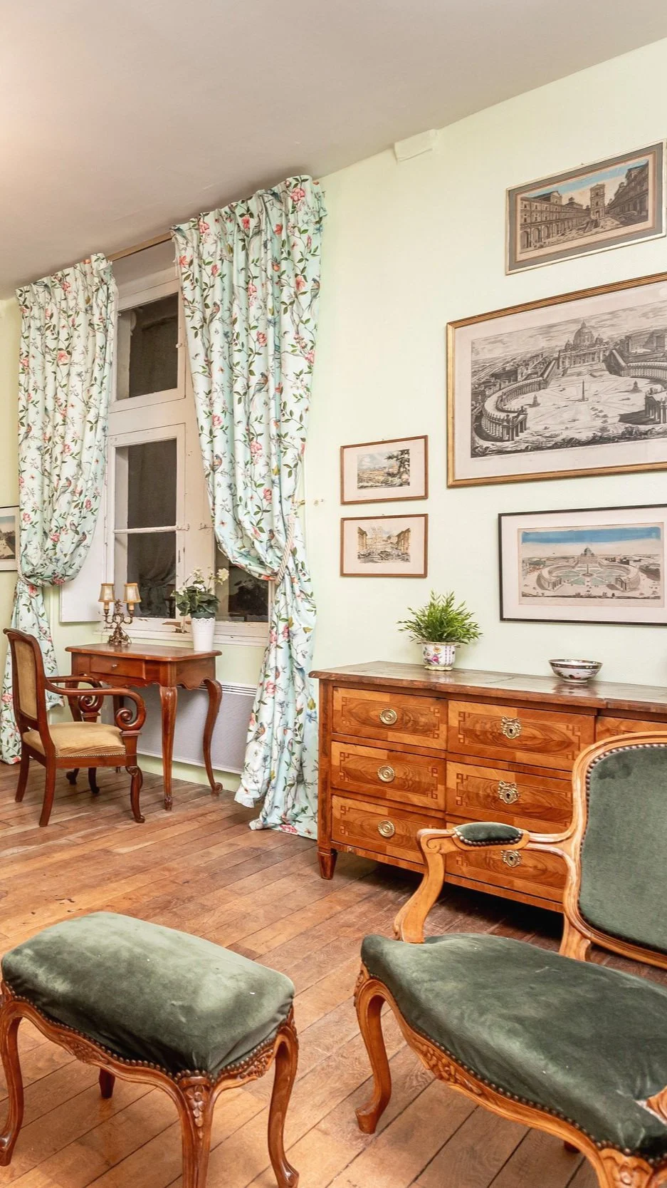 The ground floor offers 500 square meters of beautifully appointed spaces, including drawing rooms, a grand saloon, a gallery, a library, and a kitchen—perfect for hosting unforgettable events.