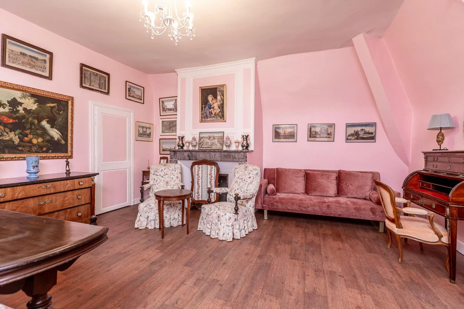 The Pink Room is adorned with antique perspective views and traditional toile de Jouy, inviting you to step back in time and immerse yourself in history.